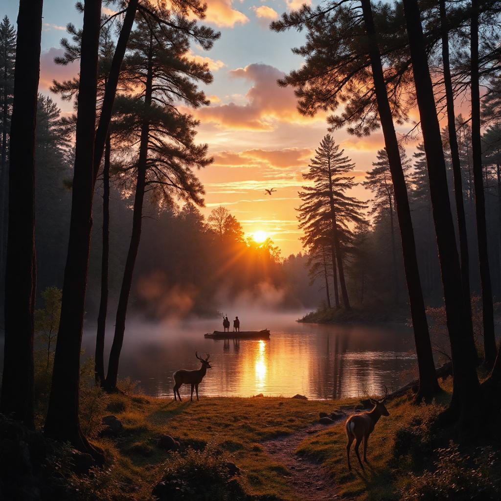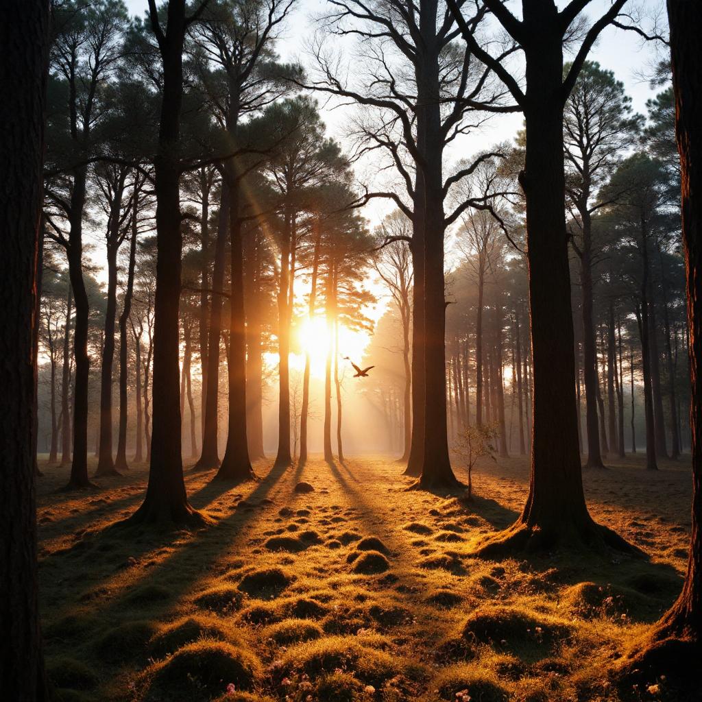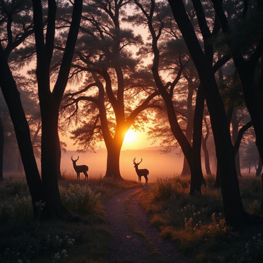 - Wälder im Abendlicht: Die Schatten der Bäume und das letzte Licht des Tages schaffen eine mystische Atmosphäre.